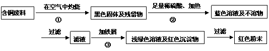 (1)甲方案的①②③三个步骤中,与铜或铜的化合物有关的化学反应方程式分别是: