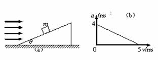 18.(09·上海物理·22)(12分)如图A.,质量m=1kg的物体沿倾角q=37°的固定粗糙斜面由静止开始向下运动,风对物体的作用力沿水平方向向右,其大小与风速v成正比,比例系数用k表示,物体加速度a与风速v的关系如图B.所示。求: