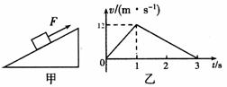 13.如图甲所示,质量为1.0 kg的物体置于固定斜面上,斜面的倾角θ=30°,对物体施以平行于斜面向上的拉力F,1.0 s后将拉力撤去,物体运动的v-t图象如图乙(设斜向上为正,g=10 m/s2),试求: