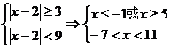 从形的方面考虑,不等式|x-3|-|x+1|<1表示数轴上到3和-1两点的距离之差小于1的点![]()