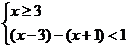 例3 解不等式:|x-3|-|x+1|<1![]()