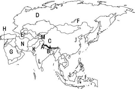 ● 亚洲的地理位置(纬度位置、海陆位置)、周围的大洲、大洋