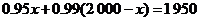 ⑵由题意,得55x+35(500-x)≤20000,………………6分