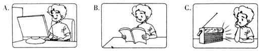 听下面5段对话。 每段对话后有一个小题,从题中所给的A、B、C三幅图中,选出一个与你所听到的内容相符的选项,并标在试卷的相应位置。每段对话读两遍。