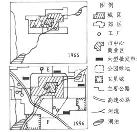 下图是某城市1966-1996年发展示意图,回答17-18题。