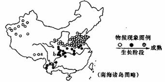 读三月上旬我国某种农作物物候现象分布示意图,回答25~26题。