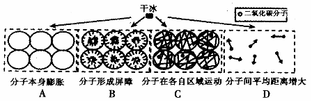 7、人们常用干冰营造云雾缭绕的舞台效果,这是因为干冰在室温下很容易直接变成气体。在此过程中体积可以增大很多倍,原因是( )