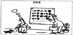 望子成龙,人之常情。但这位父亲是否太着急了点?请根据下面的图画,以“时间表”为题,写一篇100词左右的短文,可适当发表自己的看法。