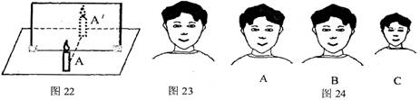(5)图23是小军本人,他在进行实验时,从镜中也观察到了自己的像。那么他在镜中看到自己的像应是图24中的 (填序号).