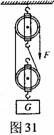 如图31所示,,用滑轮组提升重物时,重800N的物体在10s内匀速上升了1 m。已知拉绳子的力为500N,在提升重物的过程中: