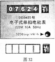 (3)小明同学家的电能表本月末抄表时的示数如图32所示,若本月应交电费45元,且电价为0.5元/度,请在图32中空格内填入上一次抄表时的示数。