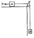 如图所示,在水平桌面的边角处有一轻质光滑的定滑轮K,一条不可伸长的轻绳绕过K分别与物块A、B相连,A、B的质量分别为mA、mB。开始时系统处于静止状态。现用一水平恒力F拉物块A,使物块B上升。已经当B上升距离为h时,B的速度为υ。求此过程中物块A克服摩擦力所做的功。重力加速度为g。