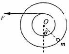 半径分别为r和2r的两个质量不计的圆盘,共轴固定连结在一起,可以绕水平轴O无摩擦转动,大圆盘的边缘上固定有一个质量为m的质点,小圆盘上绕有细绳.开始时圆盘静止, 质点处在水平轴O的正下方位置.现以水平恒力F拉细绳, 使两圆盘转动,若恒力 F=mg,两圆盘转过的角度θ= 时,质点m的速度最大.若圆盘转过的最大角度θ=π/3,则此时恒力F= 。