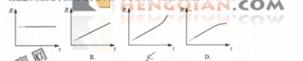 16.大爆炸理论认为,我们的宇宙起源于137亿年前的一次大爆炸。除开始瞬间外,在演化至今的大部分时间内,宇宙基本上是匀速膨胀的。上世纪末,对1A型超新星的观测显示,宇宙正在加速膨胀。面对这个出人意料的发现,宇宙学家探究其背后的原因,提出宇宙的大部分可能由暗能量组成,它们的排斥作用导致宇宙在近段天文叶期内开始加速膨胀。如果真是这样,则标志宇宙大小的宇宙半径R和宇宙年龄t的关系,大致是下面哪个图像?