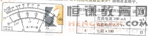 I.(6分)用多用电表进行了几次测量,指针分别处于a和b的位置,如图所示。若多用电表的选择开关处于下面表格中所指的档位,a和b的相应读数是多少?请填在表格中。