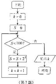 7.某程序框图如图所示,该程序运行输出的k的值是