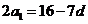 由a2+a7=16.得