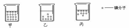 (2)甲、乙、丙三个同学分别画出下面的示意图,表示溶液中碘分子的分布(汽油分子没有画出)。