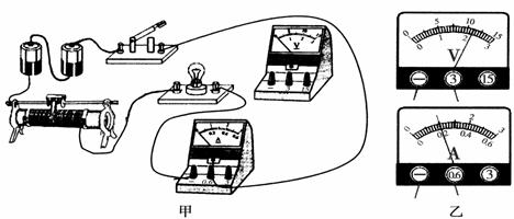 13.(2009年娄底市)在用“伏安法测小灯泡的电阻”实验中. (1)在图甲中,请你将电压表正确连入电路,完成电 路的连接.