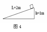 16.一质量为1kg物体从光滑斜面顶端由静止开始滑下,如图4所示,斜面高1m,长2m.不计空气阻力,物体滑到斜面底端的速度大小为 m/s。 (g=10m/s2)。