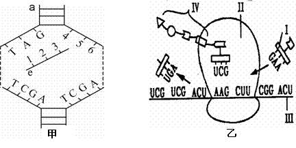 (3)乙图表示 过程,Ⅰ中与Ⅲ上的碱基进行配对的三个碱基叫 。