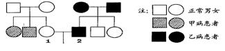 15.(07盐城高三调研)下图所示的遗传系谱图中,2号个体无甲病致病基因。1号和2号所生的第一个孩子表现正常的几率为 ( )