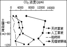 读我国某石灰岩地区不同植被下土壤空气中CO2浓度示意图,完成25-27题。