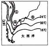 (4)③处等温线向南凸出是受洋流影响,那么流经③处