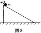 11.如图8所示,表面粗糙的斜面固定于地面上,并处于方向垂直纸面向外、磁感应强度为B的匀强磁场中。质量为m、带电量为+Q的小滑块从斜面顶端由静止下滑。在滑块下滑的过程中,下列判断正确的是