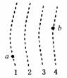 13、图中虚线所示为静电场中的等势面1、2、3、4,相邻的等势面之间的电势差相等,其中等势面3的电势为0。一带正电的点电荷在静电力的作用下运动,经a、b点时的动能分别为26eV和5eV。当这一点电荷运动到某一位置,其电势能变为-8eV时,它的动能应为  eV。