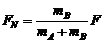 例5. 如图所示,A、B两木块的质量分别为mA、mB,在水平推力F作用下沿光滑水平面匀加速向右运动,求A、B间的弹力FN。