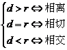 设两圆圆心分别为O1、O2,半径分别为12,|O1O2|为圆心距,则两圆位置关系如下: