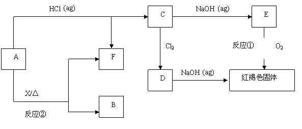 (8分) 已知A为金属单质,它们之间能发生如下反应(部分产物未标出)