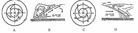 C.沿海地区白天的热力环流          D.东亚冬季的季风环流
