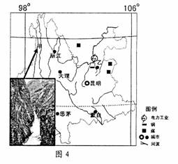 读云南省简图及甲地地貌观图(图4),回答8~9题。