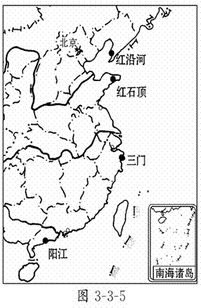 至2020年,中国将增建多座核电站。目前浙江三门核电站、辽宁红沿河核电站、广东阳江核电站和山东乳山红石顶核电站等工程正全面展开,读图回答1、2题。