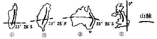 读世界某些岛屿或大陆轮廓示意图,回答第15题。