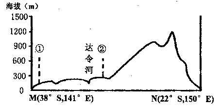 读世界某地区从M地至N地的地形形面图,回答16 -17题。