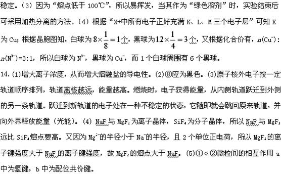 [解析]本题主要考查了晶胞中粒子的排布,不同晶体熔沸点的比较以及微粒间的作用力。(2)迁移考查NaCl晶胞中粒子的排列;(4)熔沸点的比较规律;(5)①比较σ、π间的区别;②氢键和配位键的表示方法不同,氢键用“……”,配位键用“→”表示。