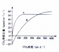 (接近大气CO2浓度)时,光合作用强度较高的植物是_______________。