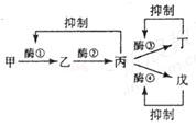 A.丁物质既是酶③催化生成的产物,又是酶③的反馈抑制物