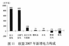 读图11关于欧盟2007年新增电力,下列叙述正确的是