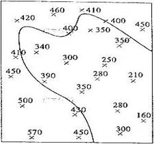 (2)在制作地图时,我们可以根据相邻实测点的高程确定它们之间待定高程点的位置来绘制等高线。请用此方法绘出C地的400m等高线。(2分)