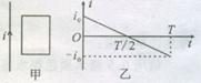 直导线中的电流i随时间t的变化关系如图乙所示。在T/2