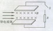 磁流体发电机的示意图。设两金属板间的距离为d,