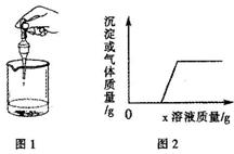 15.向烧杯中逐滴加入x溶液至过量(图1),生成沉淀或气体的质量与加入x溶液的质量关系符合图2的是