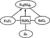 (6分)请按右图所示的硫酸知识网络填空(图中“-”表示相连的两种物质能发生反应,“→”表示一种物质能转化成另一种物质):