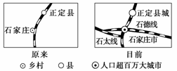 (3)石家庄市原是正定县的一个乡村,目前发展成规模远大于正定县的大城市。读图回答下列问题。