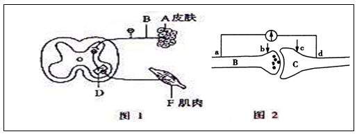 52.图1是当A接受一定强度刺激后引起F收缩过程的示意图。图2为图1中D结构的方法示意图,请回答: