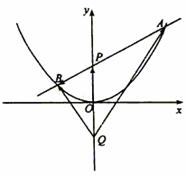[题设变更2](2004全国湖南文21)如图,过抛物线x2=4y的对称轴上任一点P(0,m)(m>0)作直线与抛物线交于A,B两点,点Q是点P关于原点的对称点.设点P分有向线段